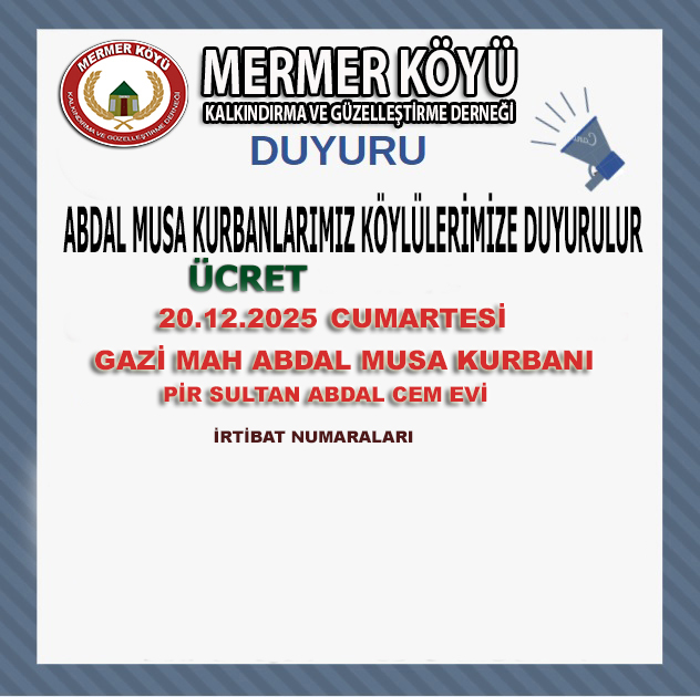 ABDAL MUSA KURBANLARIMIZ KÖYLÜLERİMİZE DUYURULUR